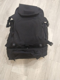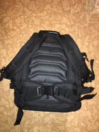 • Особенности строения: Спереди на рюкзаке — защитная накладка, которая крепится на карабины, и застегивается сверху на клапан, с нашитой на него ворсовой тканью для шевронов и т. д. Под накладкой находится отделение 35×25 см с двумякарманами 14×14 см. Спереди на уровне пояса у рюкзака есть пристегной карман 22×10×15 см с нашитыми стропами. По бокамрюкзака- два кармана 20×4×11 см. Основное большое отделение размером 43×35×15 см, в нем карман 25×30 см. Спинка рюкзака и лямки, со стороны прилегающей к телу, прошиты поролоном и тканью-сеткой, которые обеспечат максимальный комфорт. На лямках есть стропы для навешивания дополнительных аксессуаров. Для переноски рюкзака в одной руке есть ручка с прорезиненным покрытием.