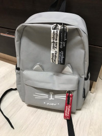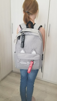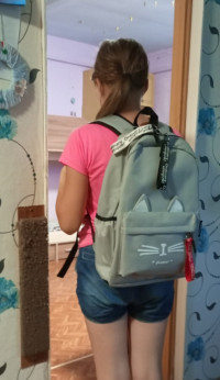 Школьный рюкзак для девочки с котом, которого символизируют декоративные ушки и рисунок с усиками на внешнем кармане. Внутри одно большое отделение и два маленьких, пригодных для тетрадей и ручек. Имеется один боковой карман. Рюкзак с успехом можно использовать в качестве школьного, обычного городского, во время прогулок по паркам и катания на велосипеде или самокате. Вполне уместно и пройтись с ним по магазинам. Все застёжки - молнии, а материалом изготовления является нейлон, что делает рюкзак особенно мягким и лёгким. Довольно мягкие не только стенки корпуса, но и лямки, что хорошо для нежной кожи девочек. Возрастной диапазон - от 5 до 17 лет, но предназначено изделие преимущественно подросткам. Рюкзак станет отличным подарком для любой девочки, и относится к числу полностью универсальных. Его вместимость - около 16 л, чего вполне достаточно для переноски учебников или формы для занятий спортом.