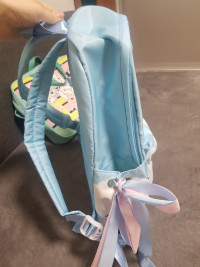 Имеется один боковой карман, внутри одно большое отделение и два маленьких отдела для тетрадей и канцелярских принадлежностей