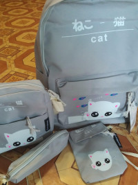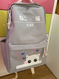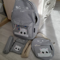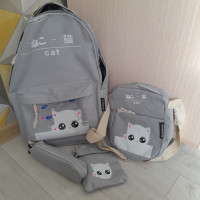 Школьный рюкзак для девочек, вместе с тем - набор из 4 предметов, в который кроме рюкзака входят ещё и пенал, кошелёк и сумочка. Полная школьная экипировка, которую можно использовать в качестве повседневного рюкзака для города и вылазок на природу. С таким рюкзаком можно совершать пробежки, поскольку он изготовлен из нейлона, что делает изделие особенно мягким и нежным. Дополнительное удобство создадут и мягкие настраиваемые по фигуре лямки. Несмотря на то, что это детский комплект - его возрастной диапазон существенно расширен. В основном из-за его ненавязчивого дизайна. На кармашке изображен милый котёнок, который понравится детям, но не является именно детским атрибутом. Все застёжки - молнии, а вместимость достигает 16 л, что вполне достаточный объём для переноски не только учебников, но и спортивной формы. Такой рюкзак станет превосходным подарком, который будет вполне уместен в честь любого праздника и к началу нового учебного года.
