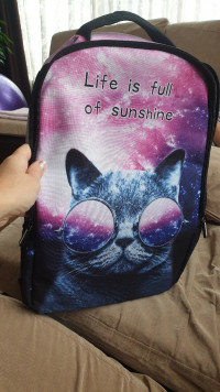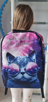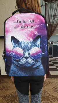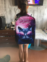 Качественный, стильный, но при этом недорогой рюкзак известного производителя Snoburg. Он изготовлен из 100%-го нейлона. Этот рюкзак отличается от остальных неповторимым принтом, а именно изображением стильного котика в очках на фоне космоса. С ним каждая девочка или девушка, несомненно, будет выделяться среди всех остальных. Помимо того, что этот космический рюкзак очень стильный, он также достаточно практичный и вместительный. Здесь вы найдете одно большое отделение, в которое помещается практически все, что вам может понадобиться. Кроме того в рюкзаке также предусмотрен карман специально для планшета, что сегодня очень важно. Есть еще один наружный карман для вещей первой необходимости, например телефона. Этот рюкзак прекрасно подходит для учебы или просто повседневного использования.