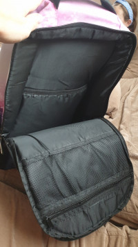 Внутри 1 большой отдел + отдел для планшета, снаружи один карман.