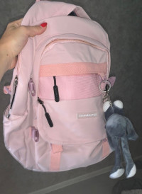 Современный рюкзак городского типа, который подойдёт школьникам и студентам, Выполняется в нескольких цветах, ориентирован в равной степени на юношей и девушек, а так же представителей самых разных возрастных групп, вне зависимости от рода деятельности. Идеально смотреться он будет на любителях велосипедных прогулок и катания на самокате. Система ремней может быть перенастроена так, как покажется удобнее. Рюкзак не предназначен для спортивного туризма, но будет вполне уместен на пляже, подойдёт для пикника или прогулок на природе. Его можно носить как на двух плечах, так и на одном. У рюкзака несколько отделений, один внутренний карман и один накладной, размещённый сзади. По бокам два крепления, которые позволят носить бутылки или термосы. В качестве застёжек используются молнии. Предусмотрен и особый дополнительный аксессуар - в комплекте забавный лягушонок в виде брелка мягкой игрушки.