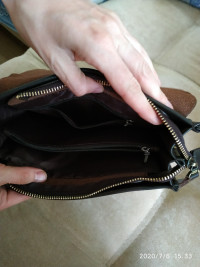 отлично выглядит, аккуратно сшито, 2 внутренних кармана на молнии.
