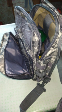 Удобная и полностью универсальная сумка-рюкзак, предназначенная для ношения через плечо на одном ремне. Дизайн ориентирован на любителей рыбной ловли и охоты, спортивного туризма, но сумка может использоваться так же садоводами и огородниками, жителями сельской местности, школьниками и студентами, представителями всех профессий. Изделие выпускается в тональности, которая ближе к окраске армейской экипировки, может иметь маскировочный рисунок или однородный окрас. Такая сумка считается мужской, но подойдёт и для спортивной девушки, предпочитающей стиль милитари. У неё два отделения, внутренний карман на молнии и карман для мобильного телефона. Вместимость не превышает 15 л. Сможет стать идеальным подарком для людей, предпочитающих активный образ жизни, выгодно подчеркнёт решительный характер. Сумка сделана из водоотталкивающего нейлона увеличенной прочности, поэтому можно без всяких опасений брать её с собой в туристический поход.