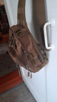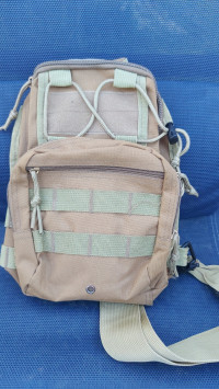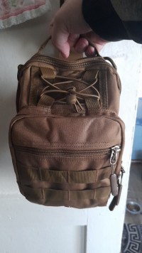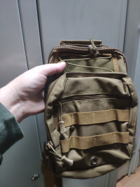 Удобная и полностью универсальная сумка-рюкзак, предназначенная для ношения через плечо на одном ремне. Дизайн ориентирован на любителей рыбной ловли и охоты, спортивного туризма, но сумка может использоваться так же садоводами и огородниками, жителями сельской местности, школьниками и студентами, представителями всех профессий. Изделие выпускается в тональности, которая ближе к окраске армейской экипировки, может иметь маскировочный рисунок или однородный окрас. Такая сумка считается мужской, но подойдёт и для спортивной девушки, предпочитающей стиль милитари. У неё два отделения, внутренний карман на молнии и карман для мобильного телефона. Вместимость не превышает 15 л. Сможет стать идеальным подарком для людей, предпочитающих активный образ жизни, выгодно подчеркнёт решительный характер. Сумка сделана из водоотталкивающего нейлона увеличенной прочности, поэтому можно без всяких опасений брать её с собой в туристический поход.