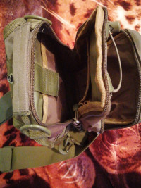Удобная и полностью универсальная сумка-рюкзак, предназначенная для ношения через плечо на одном ремне. Дизайн ориентирован на любителей рыбной ловли и охоты, спортивного туризма, но сумка может использоваться так же садоводами и огородниками, жителями сельской местности, школьниками и студентами, представителями всех профессий. Изделие выпускается в тональности, которая ближе к окраске армейской экипировки, может иметь маскировочный рисунок или однородный окрас. Такая сумка считается мужской, но подойдёт и для спортивной девушки, предпочитающей стиль милитари. У неё два отделения, внутренний карман на молнии и карман для мобильного телефона. Вместимость не превышает 15 л. Сможет стать идеальным подарком для людей, предпочитающих активный образ жизни, выгодно подчеркнёт решительный характер. Сумка сделана из водоотталкивающего нейлона увеличенной прочности, поэтому можно без всяких опасений брать её с собой в туристический поход.